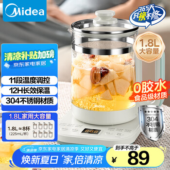 美的(Midea)1.8L大容量养生壶 全自动煮茶壶24h预约烧水壶12h智能恒温11档控温电热水壶 花茶壶煮茶器YSNC1806