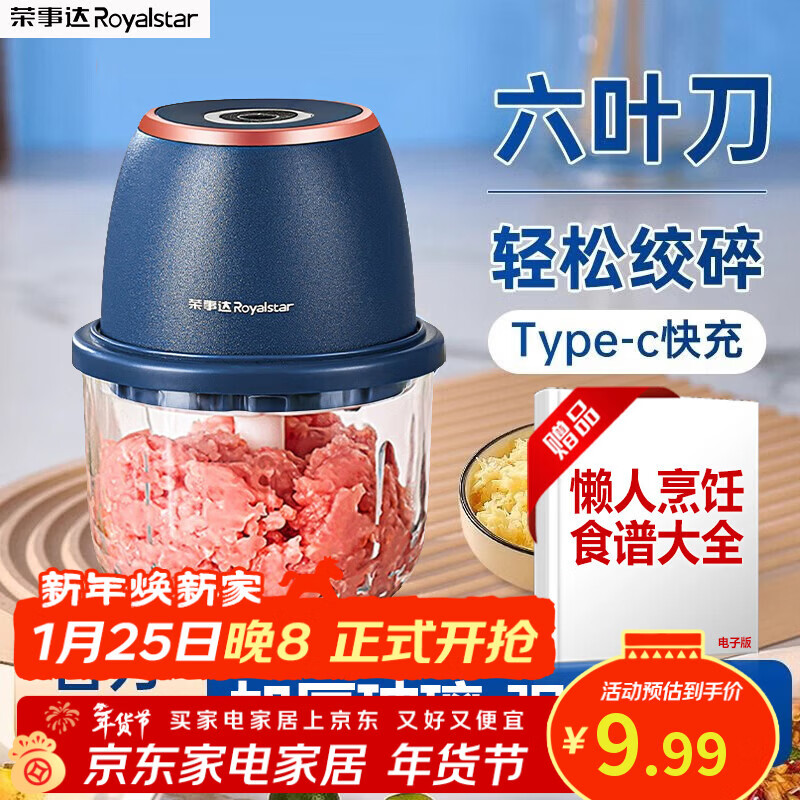 荣事达(Royalstar)捣蒜器电动蒜泥神器家用压蒜器小型绞肉机蒜泥捣碎器打蒜拉蒜器 【300ml】基础款-家用绞肉蒜