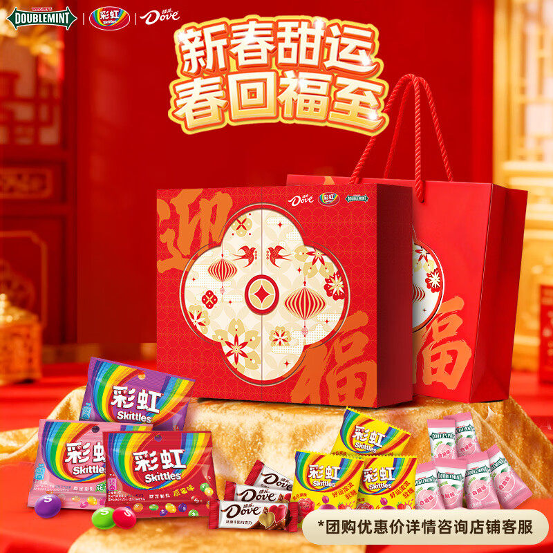 绿箭x彩虹糖x德芙混合糖果巧克力迎福礼盒约465g 年货新年礼盒