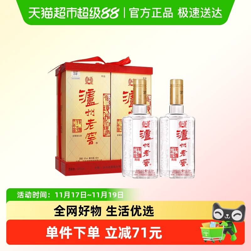 泸州老窖六年窖头曲52度礼盒装500ml*2瓶浓香型白酒