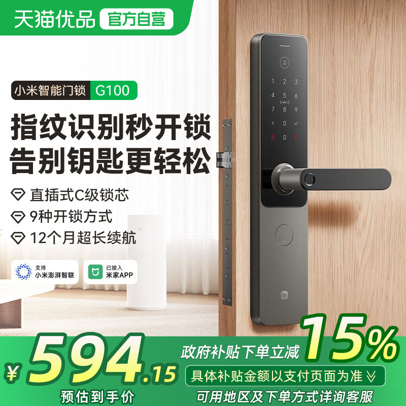 小米智能门锁G100指纹锁密码锁家用防盗自动入户智能锁E30同款