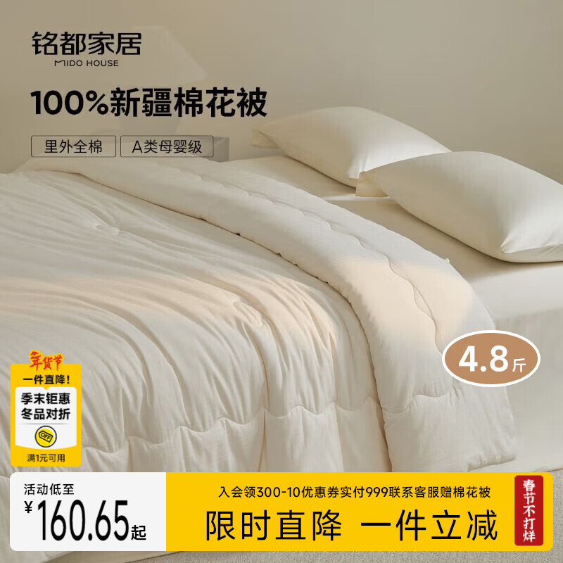 MIDO HOUSE铭都原棉新疆棉花被A类100%脱脂棉冬被 150*200cm【白色】