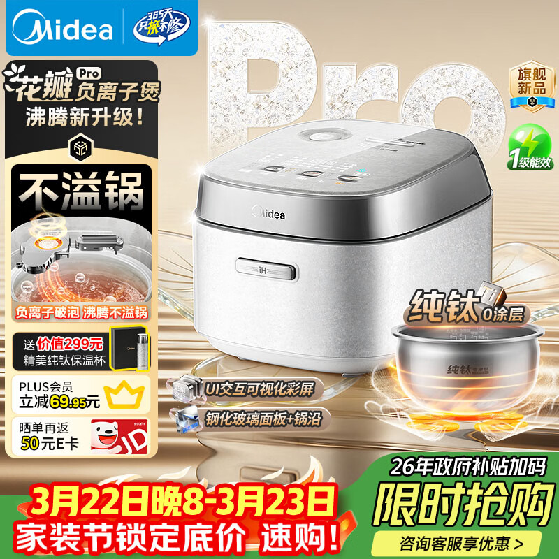 美的(Midea)花瓣Pro 2.0IH加热电饭煲电饭锅3-4人纯钛0涂层家用舒胃饭柴火饭钢化玻璃电煮饭煲40HB9T一级能效