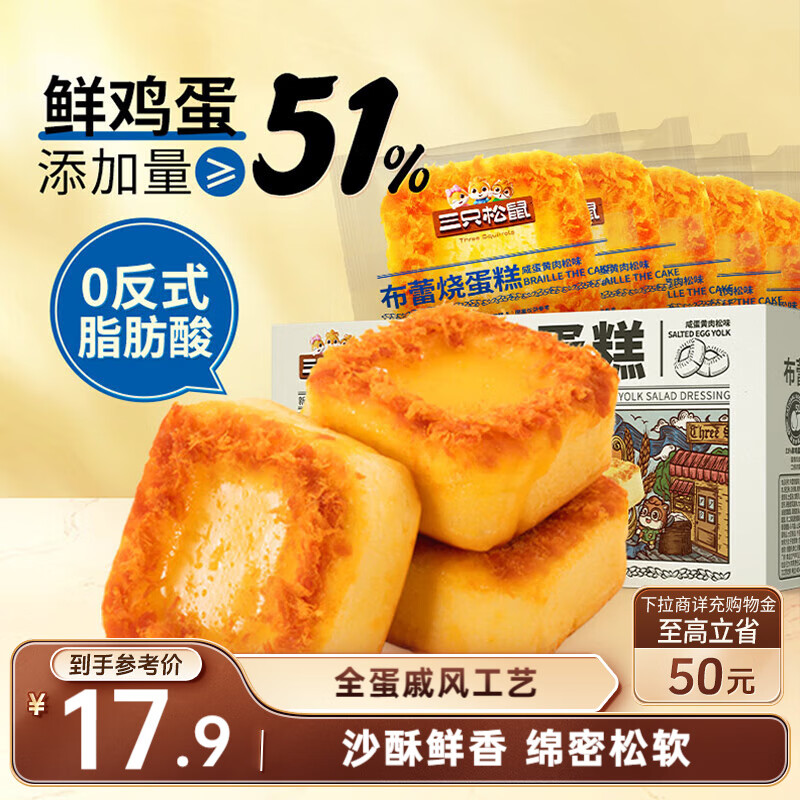 三只松鼠布蕾烧蛋糕400g箱装咸蛋黄肉松味下午茶甜点面包早餐代餐
