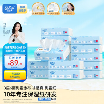 可心柔(COROU)抽纸 婴儿柔纸巾 3层M码120抽16包 保湿纸巾 云柔巾 卫生纸 整箱
