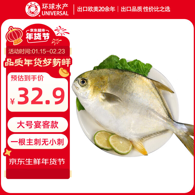 环球水产南海大金鲳鱼550g1条 BAP认证 海鱼水产 生鲜鱼类 火锅 烧烤海鲜