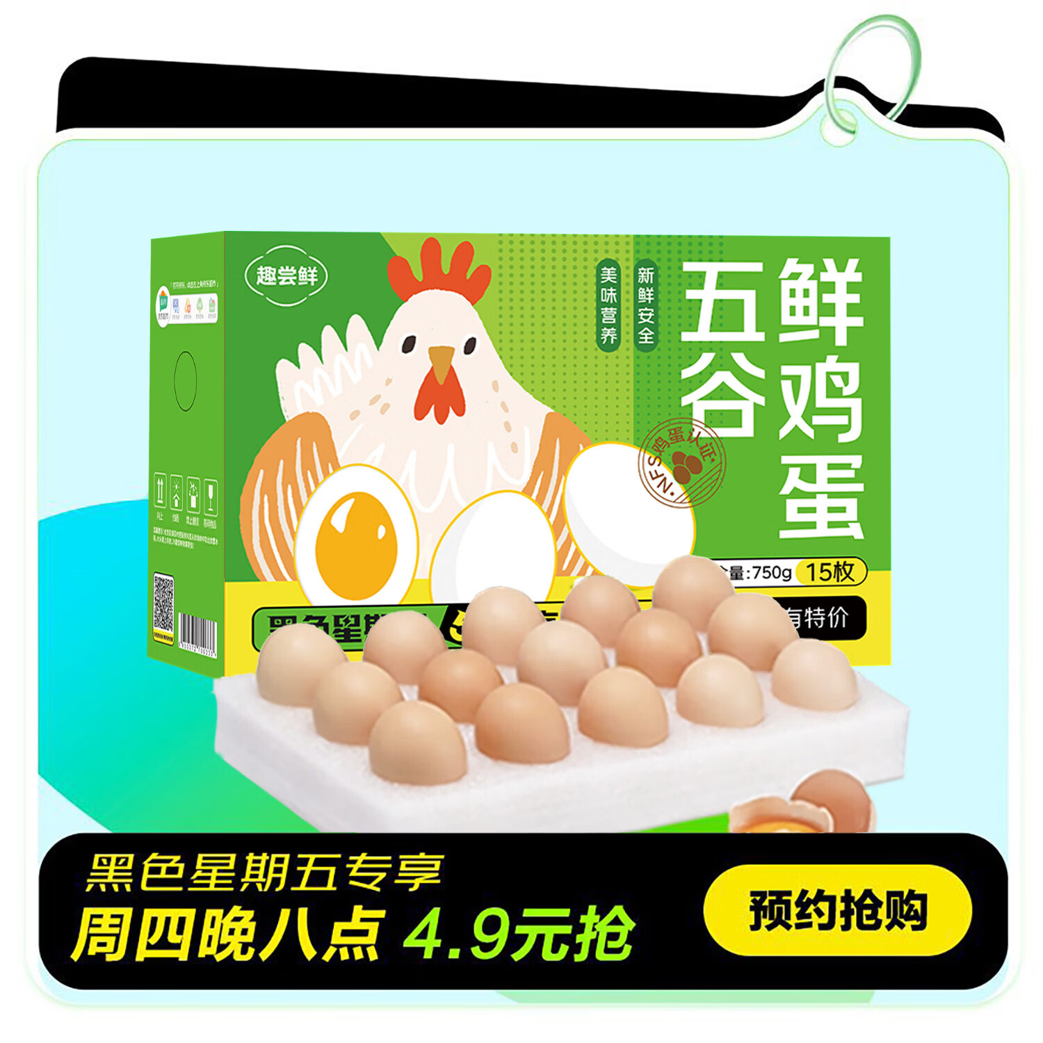 趣尝鲜无抗鲜鸡蛋15枚/盒 净重750g 源头直发