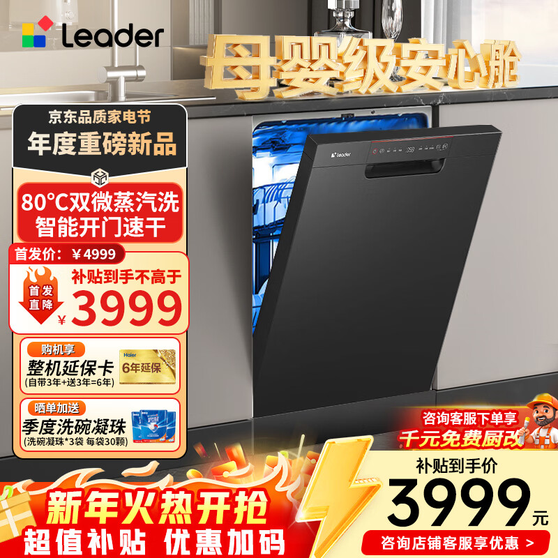 海尔(Haier)出品Leader洗碗机云朵16套大容量蒸汽洗家用 智能开门速干一级水效 嵌入式 升级五星级杀菌 LW1658GH