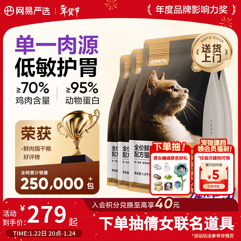 网易严选全价鲜鸡肉猫粮 成幼猫粮单一肉源无谷益生菌低敏护肠胃增肌7.2kg