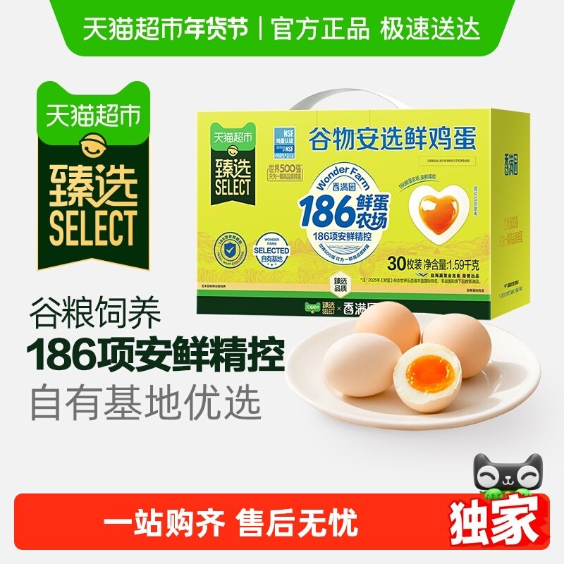 【臻选】香满园谷物安选鲜鸡蛋53g*30枚礼盒无抗生素无沙门氏菌