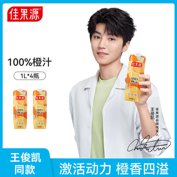佳果源佳农旗下100%橙汁含维生素C大瓶家庭分享装1L*4瓶年货礼盒