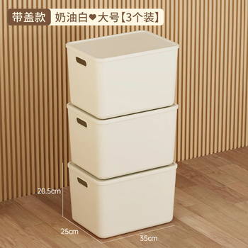 稻草熊收纳箱大号奶油风家用收纳盒塑料整理箱衣服玩具零食卧室储物箱 奶白色三个装【带盖】