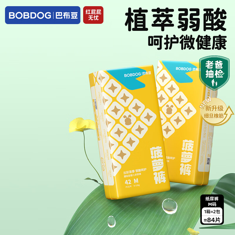 巴布豆(BOBDOG)新菠萝拉拉裤超薄透气尿不湿纸尿裤婴儿试用夜用动感贴合植萃弱酸 纸尿裤M 84片【6-11KG】
