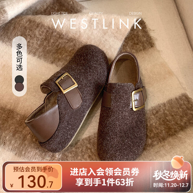 西遇(Westlink)毛呢勃肯鞋女2025新款秋冬两穿一脚蹬加绒棉鞋内增高毛毛鞋 咖色 预售12.12 35 (225)