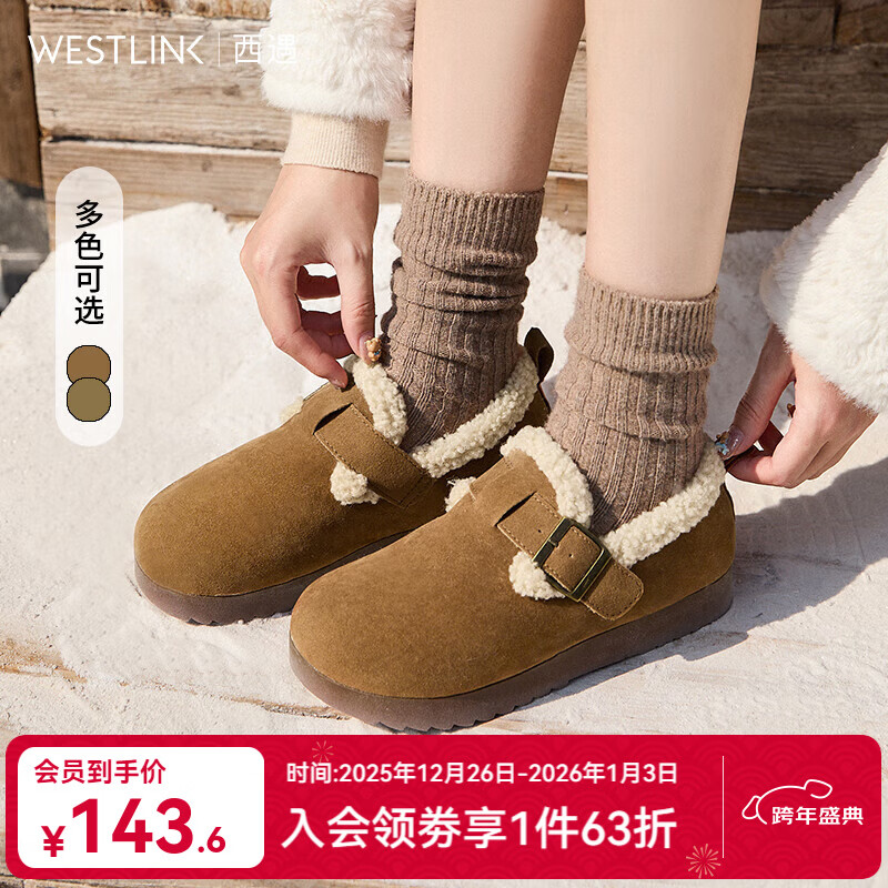 西遇毛毛勃肯鞋女加绒2025新款冬季全包复古雪地靴一脚蹬外穿棉鞋 棕色 (预售20天) 35