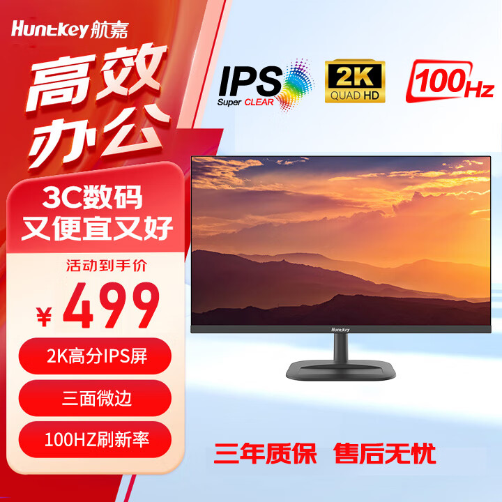 航嘉(Huntkey)23.8英寸2K100Hz超清显示器 IPS低蓝光不闪屏可壁挂三微边 家用办公电脑显示屏H2435Q