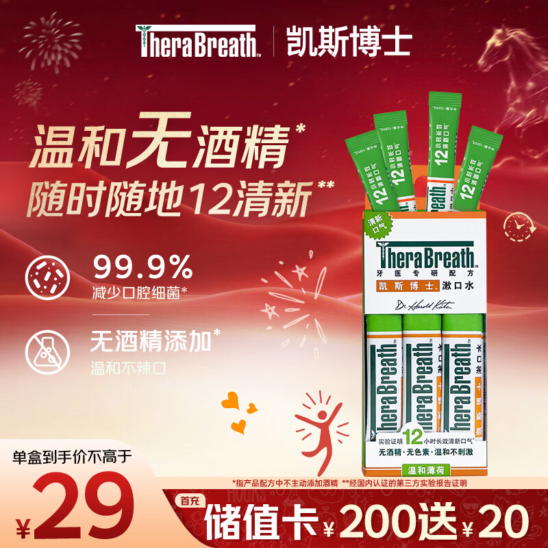 TheraBreath凯斯博士条状漱口水便携旅行装 温和薄荷10ml*10条长效清新口气