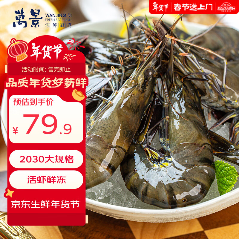 万景北海活冻巨无霸黑虎虾单冻 净重2斤/盒 20-30只 国产虾 聚餐 年货