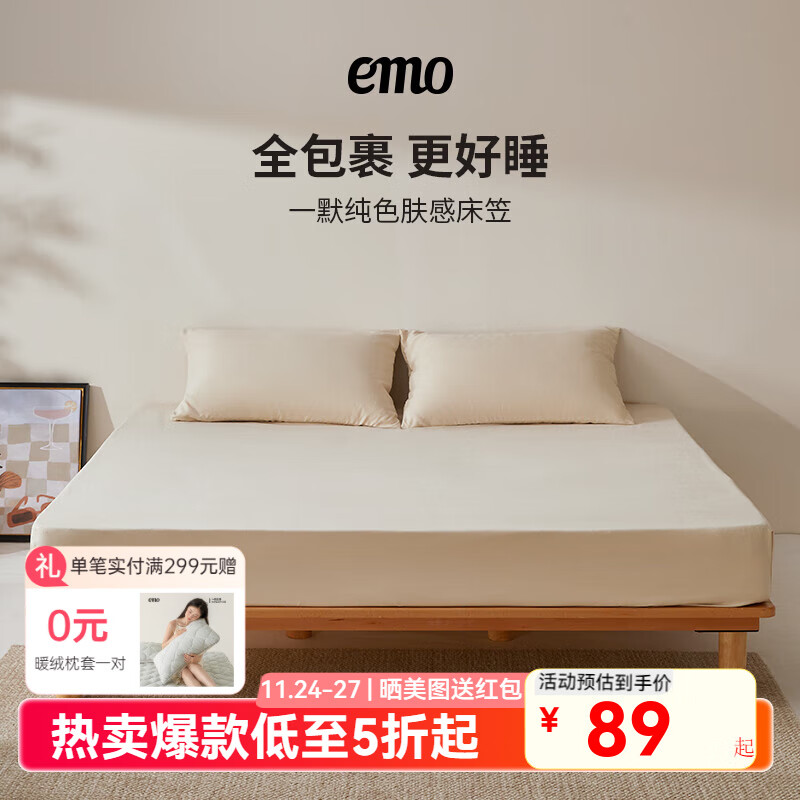 一默床笠罩全包床罩床垫保护套床垫套居家宿舍纯色肤感单双人床上床笠 米色 120*200cm