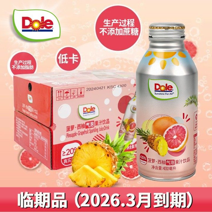 dole都乐气泡水菠萝西柚椰子果汁气泡饮品饮料汽水-临期品3月到期