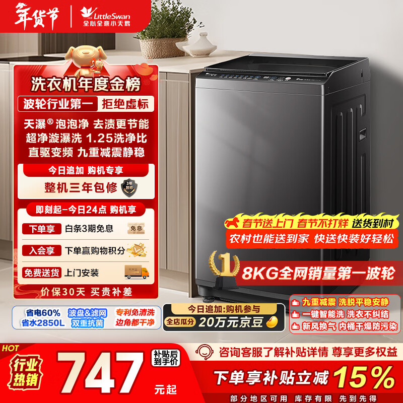小天鹅(LittleSwan)波轮洗衣机小型全自动家用 8KG 直驱变频 TB80V26DT 以旧换新 国家补贴 京东自营 一级能效