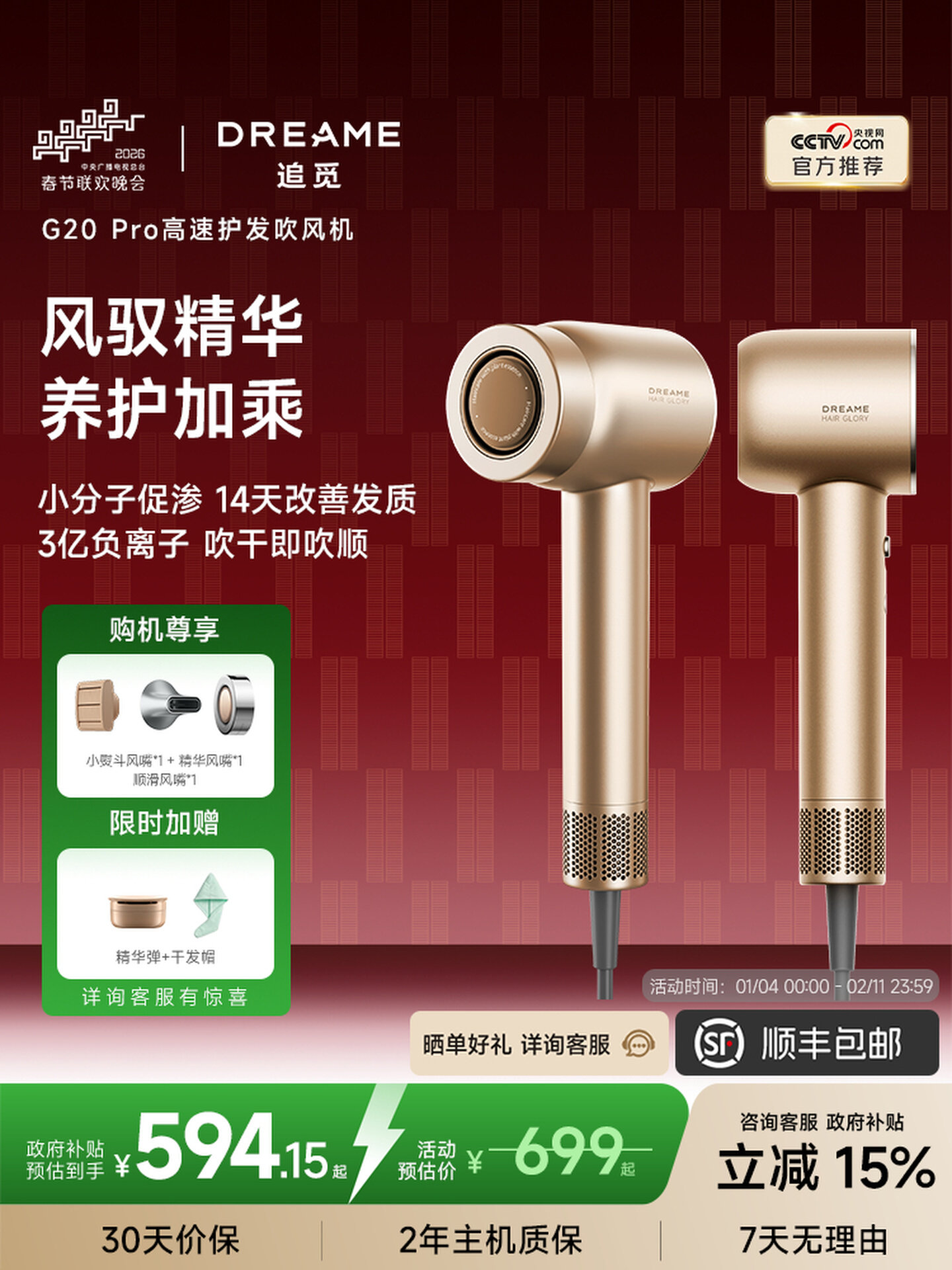 【TK专享】追觅G20pro高速吹风机负离子送礼造型大风力电吹风