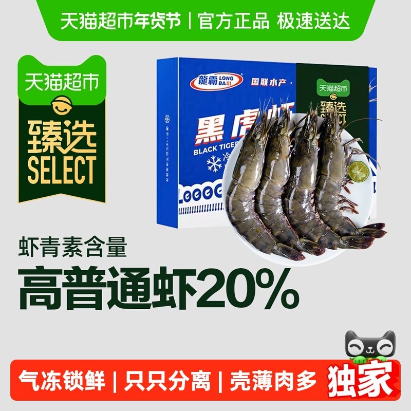 京东超市泰国活冻黑虎虾1kg 40-60只/盒 海鲜水产