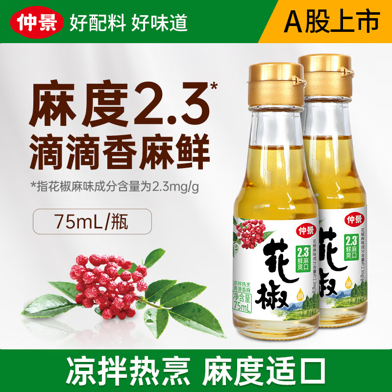 仲景 鲜花椒油藤椒油芥末油试用装 火锅麻辣烫凉拌菜海鲜料理调味油 花椒油75mlx2瓶