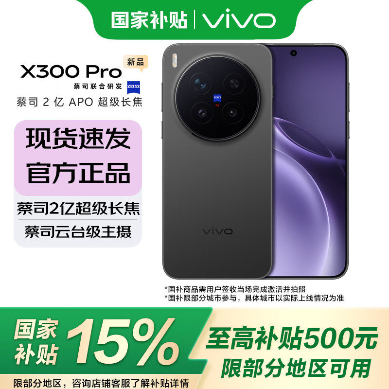 vivo X300 Pro 国家补贴 蔡司2亿APO超级长焦 蓝图自研影像双芯 5年持久流畅OriginOS 6 直屏拍照手机 纯粹黑 16+1T 官方标配