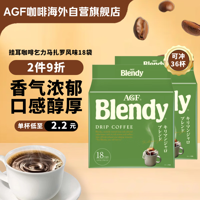 AGF挂耳咖啡乞力马扎罗风味7g*18袋*2包 Blendy滤挂式现磨手冲