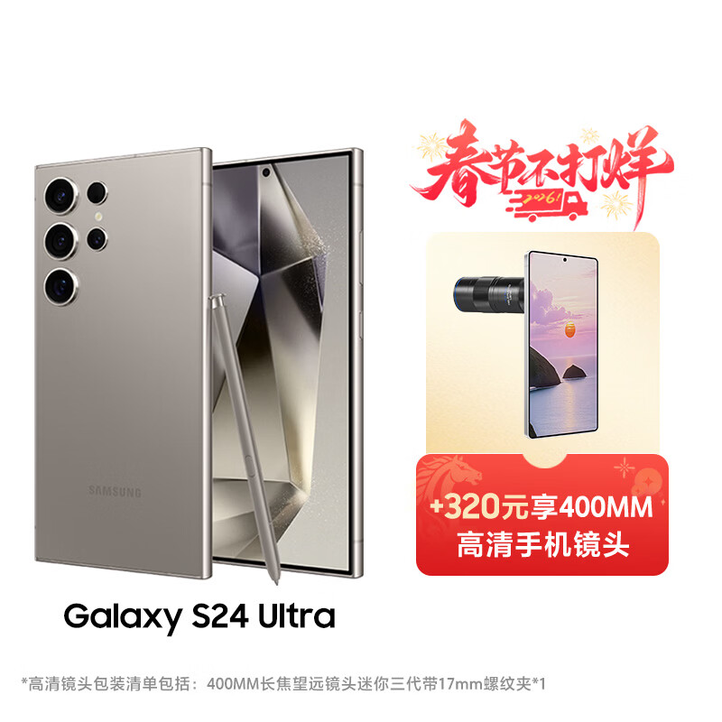 Samsung Galaxy S24 Ultra AI手机 第三代骁龙8 游戏手机 2亿像素 拍照手机 12GB+256GB 钛灰