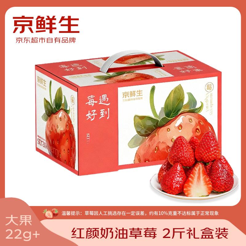 京鲜生 丹东红颜奶油草莓 净重2斤礼盒装 30-40颗 单果22g+ 年货礼盒