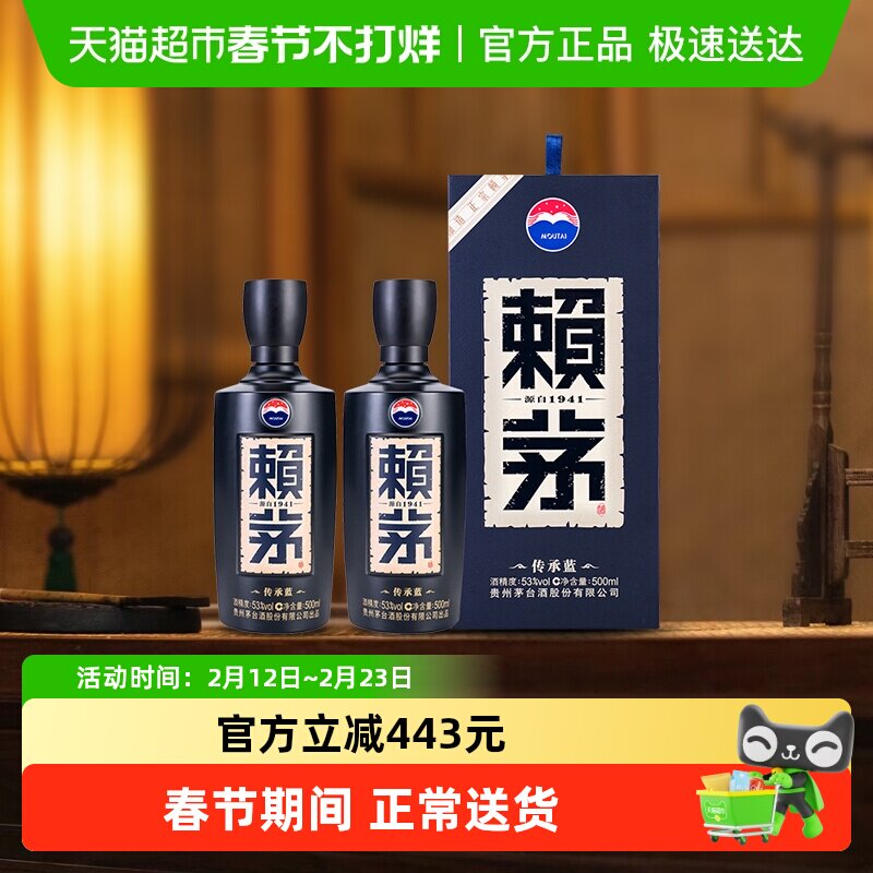 茅台赖茅传承蓝53度双瓶装酱香型白酒商务宴请500ml2瓶【无礼袋】