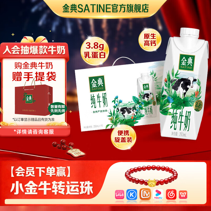 金典(SATINE)纯牛奶梦幻盖250ml*10盒/箱 3.8g乳蛋白 伊利牛奶年货礼盒 1月产 金典纯牛奶梦幻盖