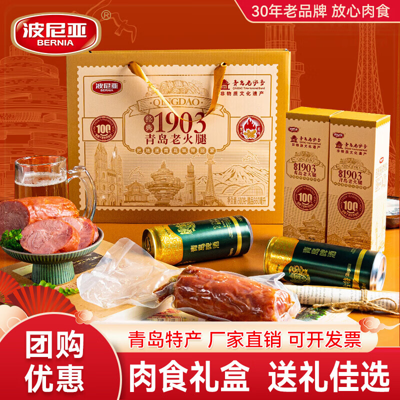 波尼亚(BERNIA)火腿烤肠送礼大礼包伴手礼袋至臻礼袋礼盒送礼长辈父母家长 1903青岛老火腿伴手礼