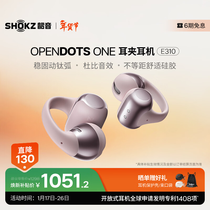 韶音(SHOKZ)OpenDots ONE动钛圈开放式蓝牙耳机无线耳机跑步运动耳夹式E310 柔雾粉