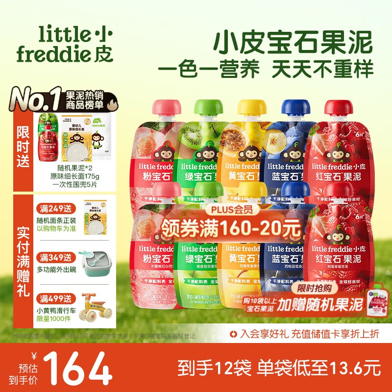 小皮(Little Freddie)宝石果泥婴幼儿西梅果泥6月+宝宝辅食水果泥便携0添加零食10袋