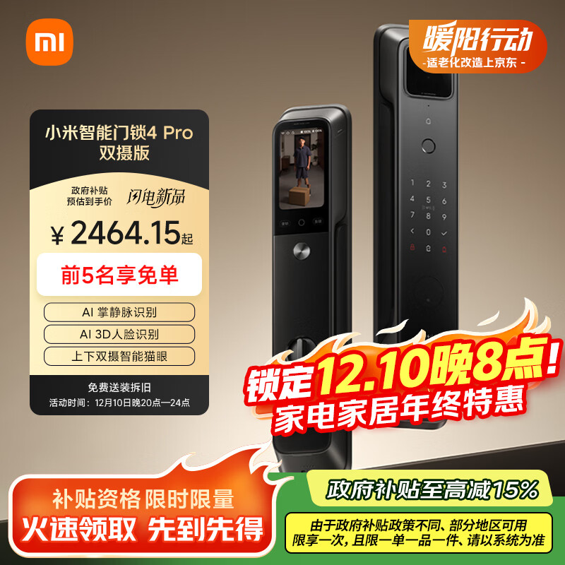 小米智能门锁4 Pro 双摄人脸掌静脉猫眼大屏入户家用智能门锁