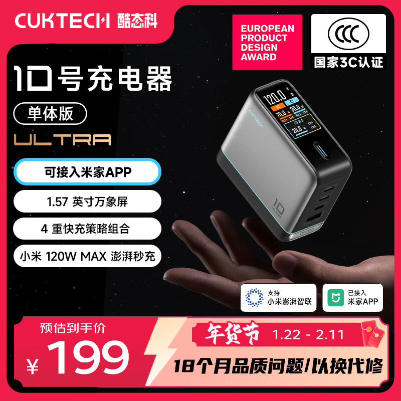 CUKTECH酷态科10号超级电能充Ultra氮化镓充电器头120W四口快充头接入米家兼容笔记本电脑苹果小米 单体版