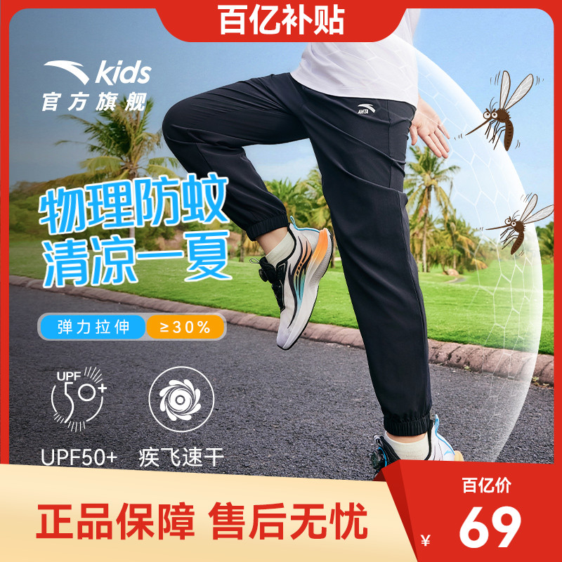 安踏儿童装男童速干裤子春秋薄款2025秋季新款秋装卫裤长裤运动裤