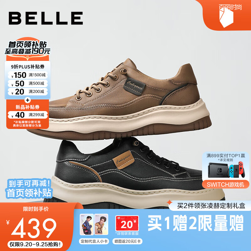 百丽厚底增高休闲板鞋男2025秋新户外潮搭套脚工装鞋A2159CM5【预售】 卡其色-单里 40 (250mm)