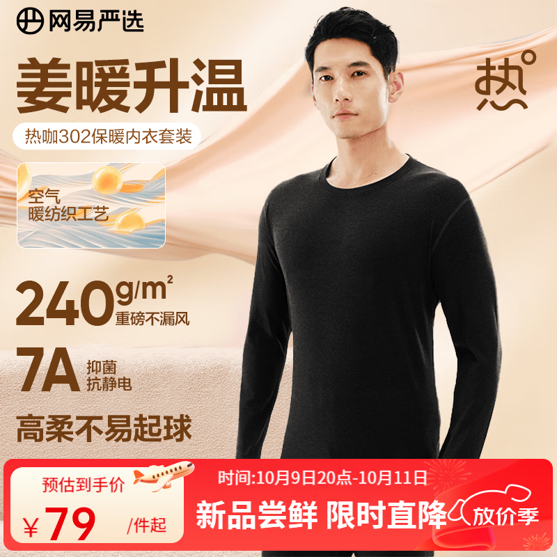 网易严选新品热咖302暖姜保暖内衣240g重磅7A抗菌柔软透气不闷汗秋衣套装 A款240g升级-星云黑-男款 L
