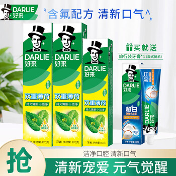 好来(DARLIE)原黑人牙膏清新口气含氟防蛀牙膏家庭组合装成人 双重薄荷组合共370g
