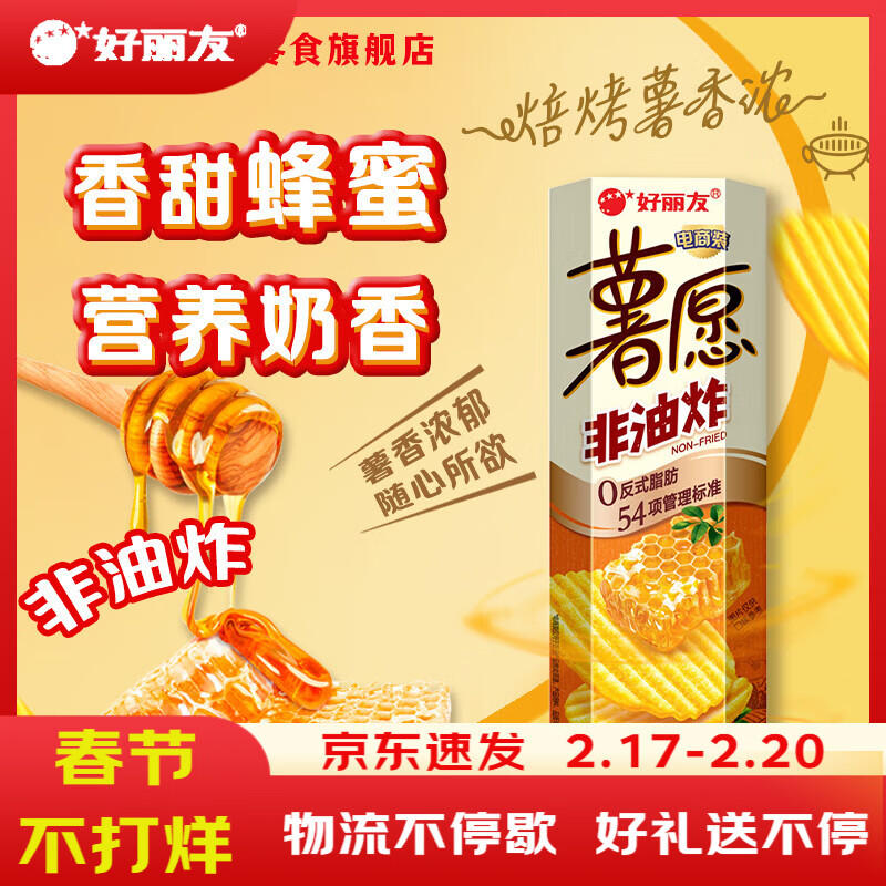 好丽友(ORION)薯愿薯片非油炸儿童零食薯片多口味膨化食品追剧办公室休闲小零食 【蜂蜜牛奶味】104g*1盒