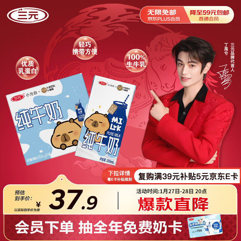 三元小方白纯牛奶200ml*24盒 100%生牛乳