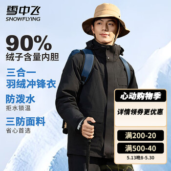 雪中飞三合一冲锋衣羽绒服情侣款秋冬运动防泼水户外连帽保暖羽绒外套女 几何黑(5915F) S (165)