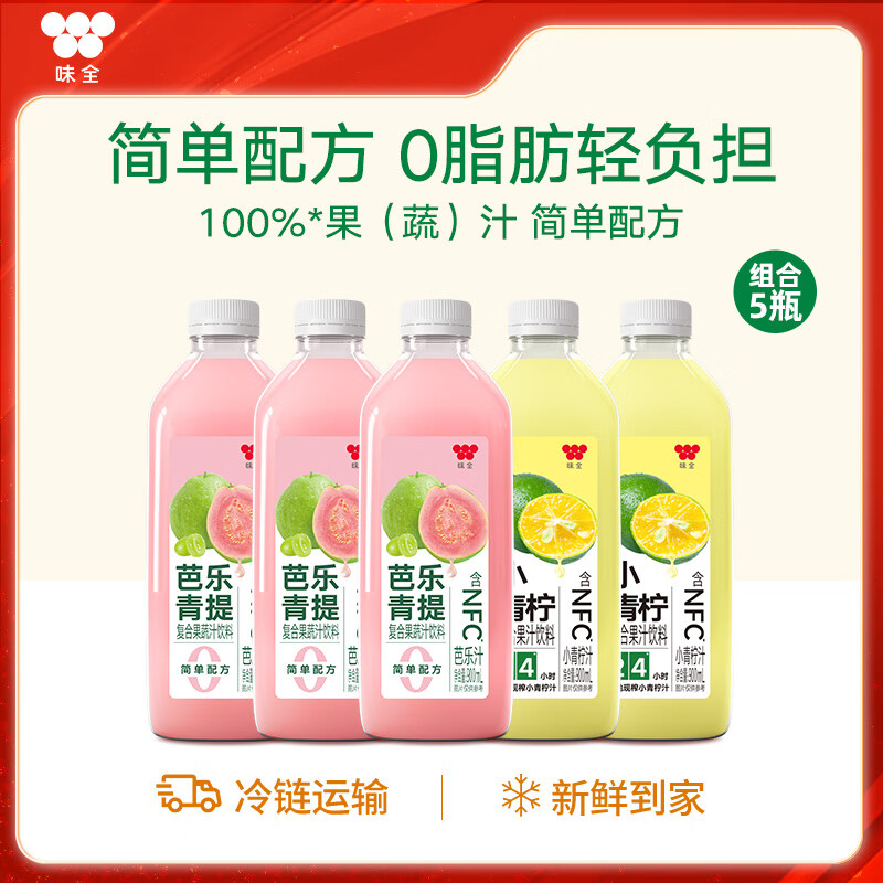 味全900ml饮料复合果蔬汁冷藏饮料家庭装分享4瓶送礼品聚会 芭乐青提900ml*3+小青柠900ml*2