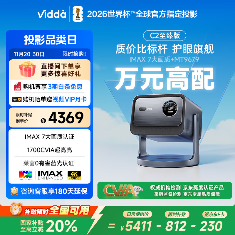 Vidda C2至臻版 海信4K超高清三色激光云台投影仪家用100吋家庭影院电视(莱茵0有害蓝光)国家补贴
