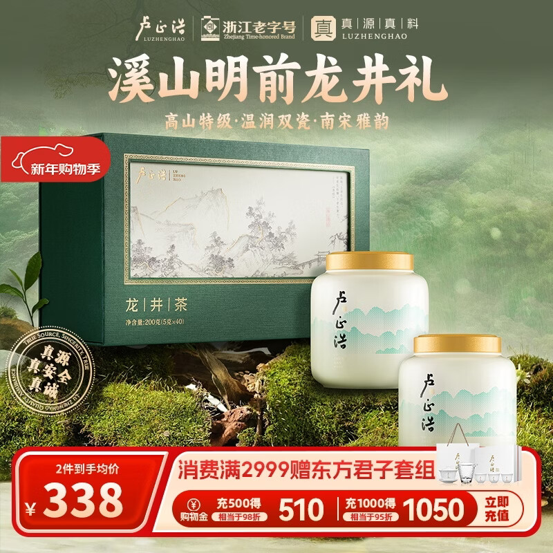 卢正浩龙井明前特级2025新茶上市绿茶茶叶钱塘产区 【溪山瓷罐】特级龙井礼盒200g