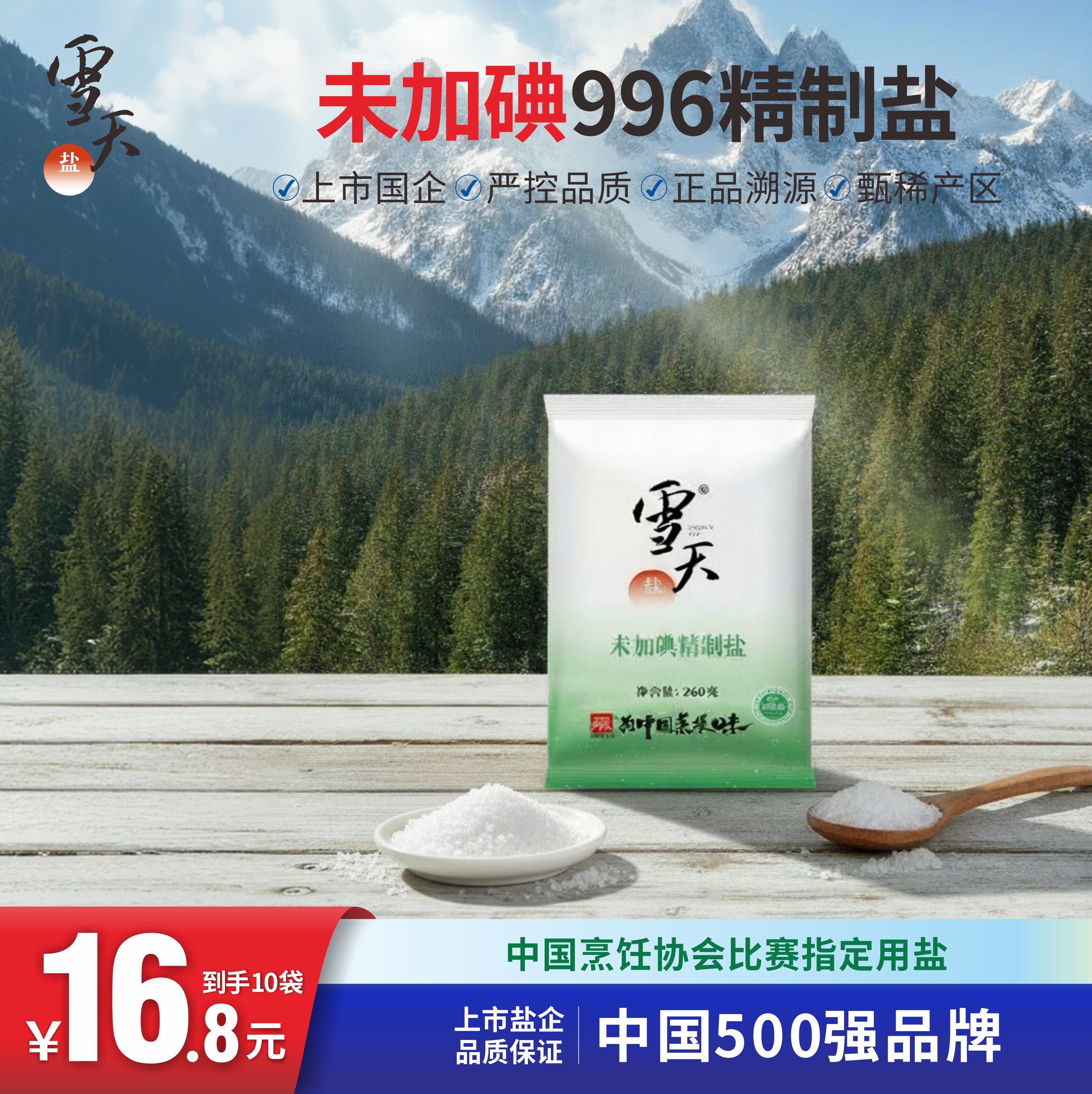 雪天绿色未加碘精制盐260g食用盐调味细盐矿井盐不加碘盐巴提味